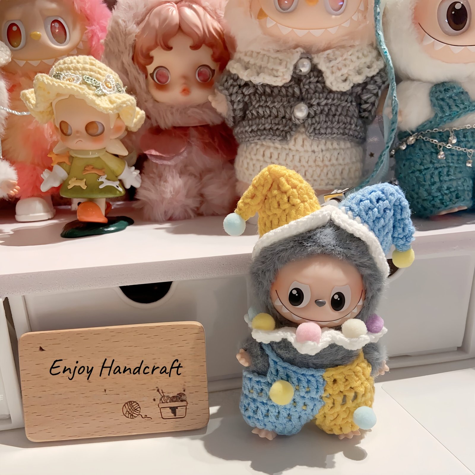 Dress your beloved Labubu in this delightful, handcrafted clown costume, designed to bring a smile to everyone’s face! The outfit boasts a classic jester-style pattern with multicolored accents and a whimsical hat to complete the playful look. It is made from high-quality to ensure it’s gentle on your figure. Easy to put on and remove, it’s ideal for creating cute scenes, celebrating birthdays or carnivals, and adding a pop of color to your collection. This unique piece is a must-have for any Labubu fan looking to showcase a fun and festive style.